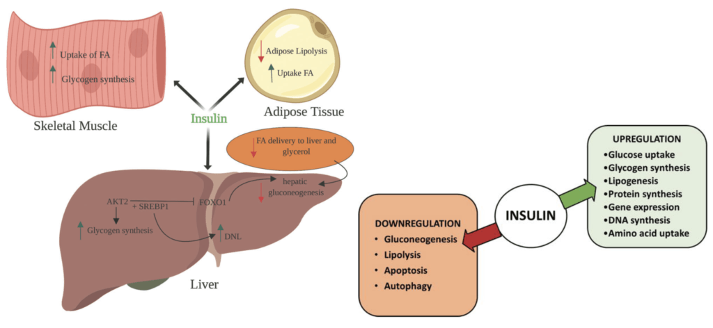 - Insulin as a very anabolic (building/growing) hormone, and does the following: