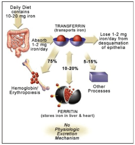 The processes of iron absorption, utilization, and transportation [9:30]