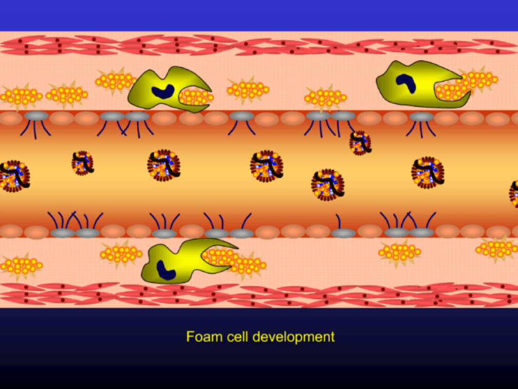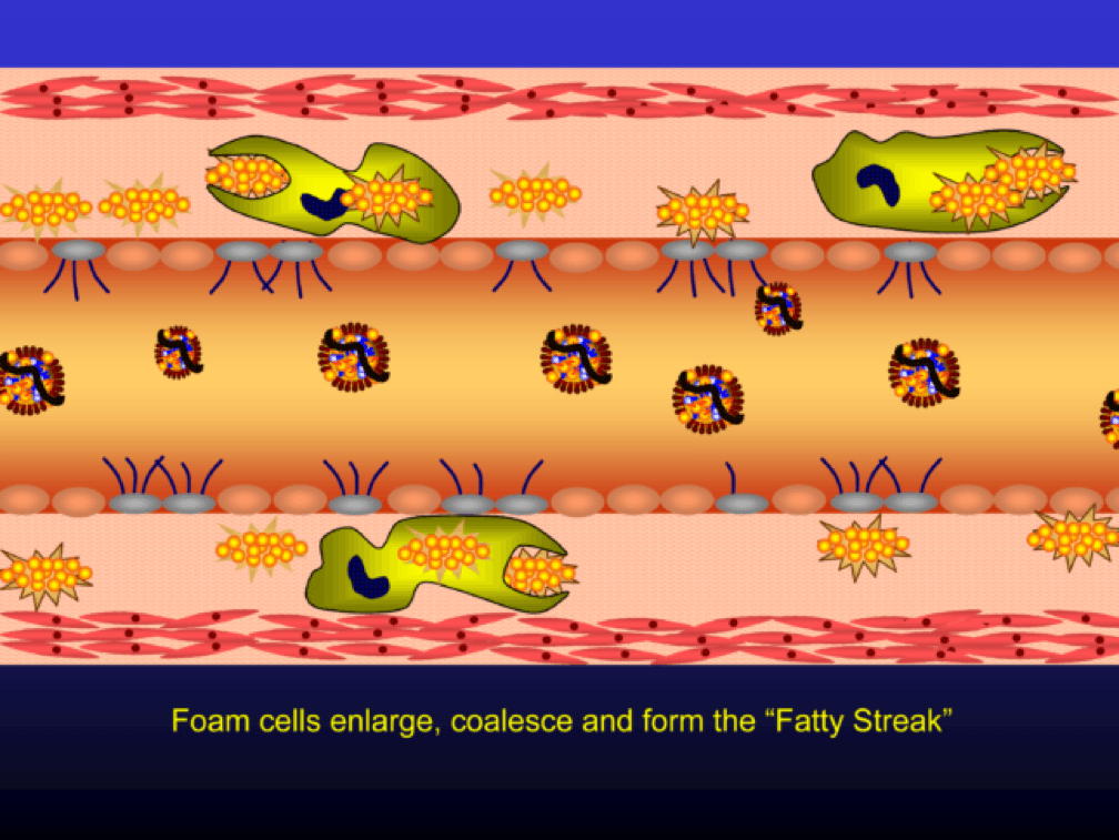Multiple foam cells coalesce to form the characteristic fatty streak, the hallmark of an early atherosclerotic plaque. Keep this in mind. Later in this post we’ll come back to “fatty streaks” and I want you to remember how much has taken place to get us to this stage. I will posit that no one reading this post does not have fatty streaks unless there are some brilliant 5-year-olds reading this during recess..