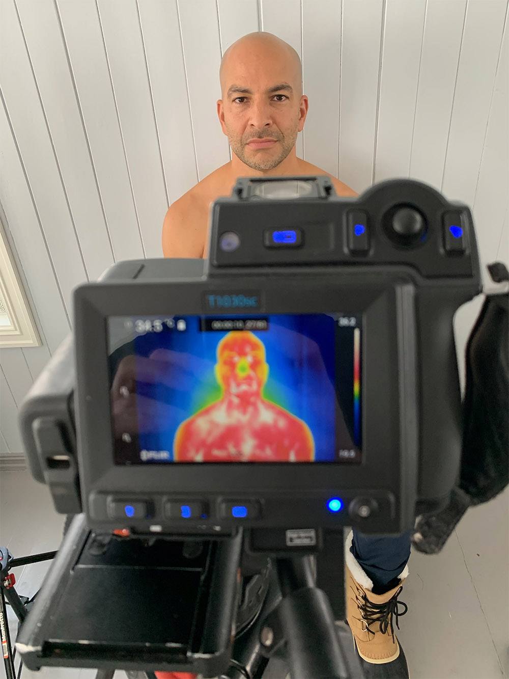 For my self-experimentation in Norway, I was not going to have a PET/CT scan following my stint in the cold, so instead I used an infrared camera to capture a thermal map of my skin surface.