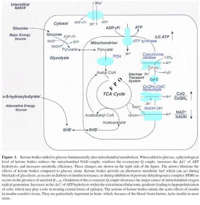 Now take a look at the figure below, from this 2001 paper. This is another rendition of the figure above showing the Krebs Cycle, but here you can see where B-OHB and acetoacetate enter the picture.