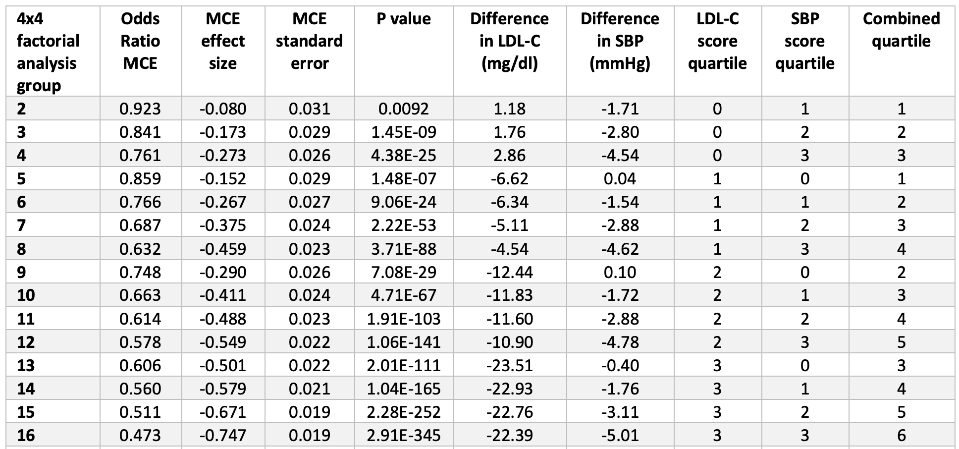 1. This Mendelian randomization demonstrates that a reduction of SBP by 5 mmHg and a reduction of LDL-C by 22.4 mg/dL, over the course of one’s lifetime, reduces risk of major adverse cardiac and vascular events by 53%. [And if you play with eTable 4, you can see all other permutations of this—I’m just pointing out the largest one.]