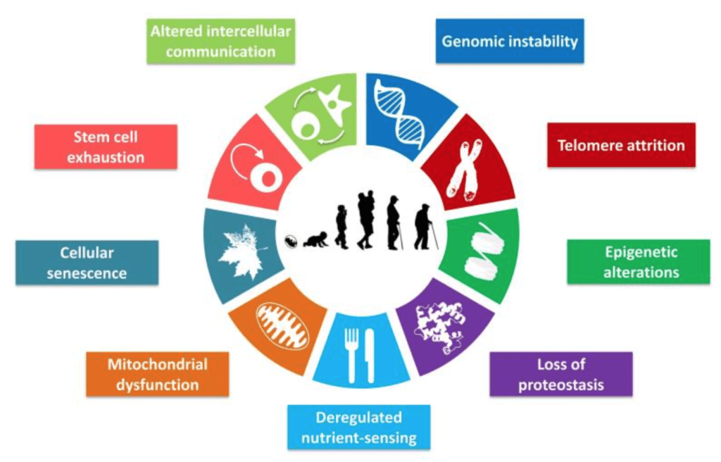 Figure 1. The Nine Hallmarks of Aging. Image credit: López-Otín et al. 2013