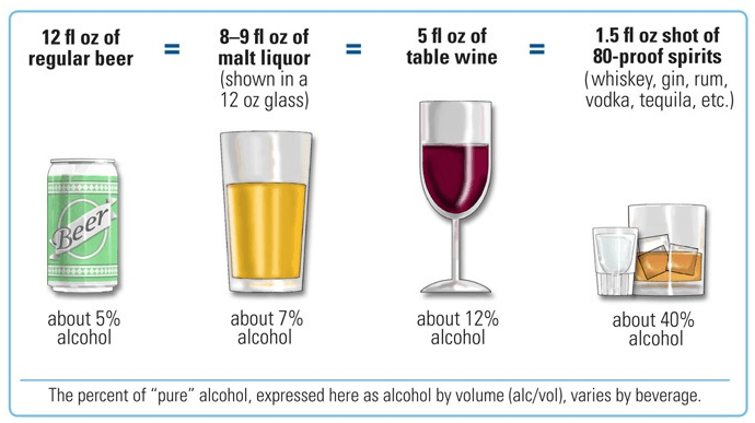 Figure 1. Examples of a standard drink that contain 14 grams of alcohol. Image credit: Wikipedia