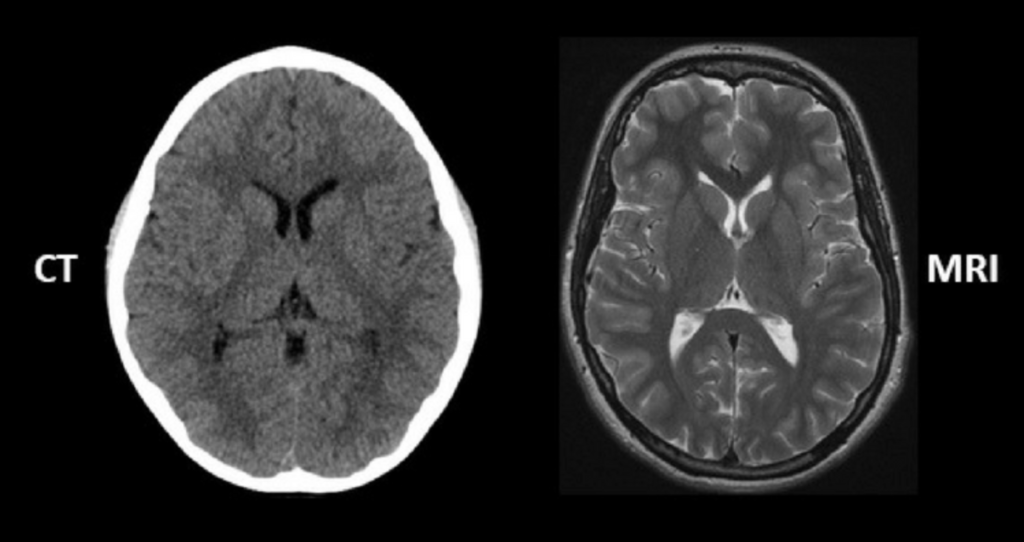 Figure 2. An example of an anatomical image of the brain with CT scan and with an MRI. Image credit: regencymedicalcentre.com