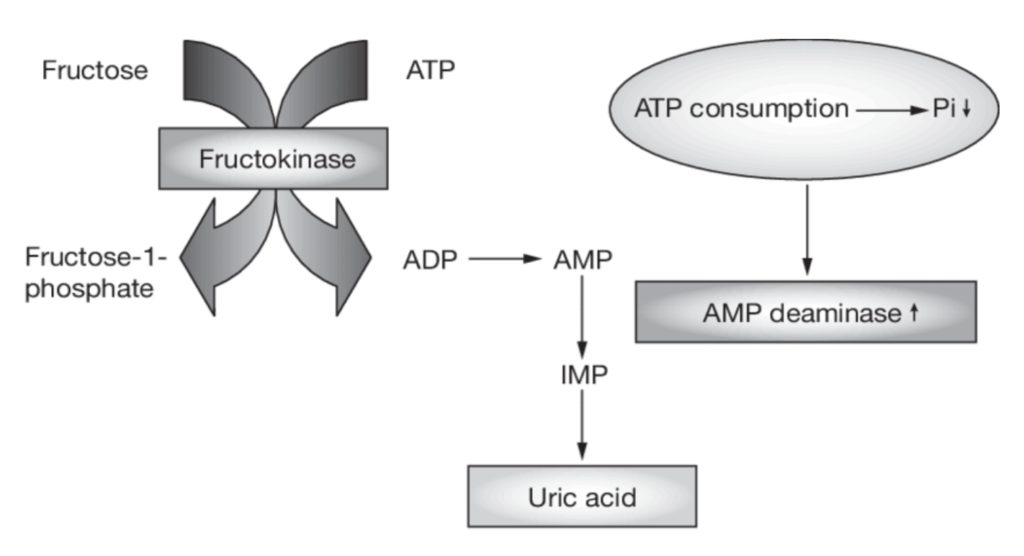 - This first step in fructose metabolism requires ATP expenditure, so consuming large amounts of fructose causes severe ATP depletion