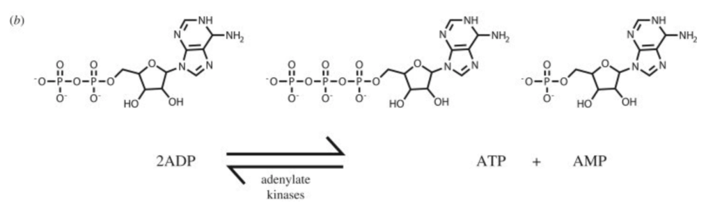 - Adenylate kinases convert ADP to ATP + AMP (and the reverse reaction)