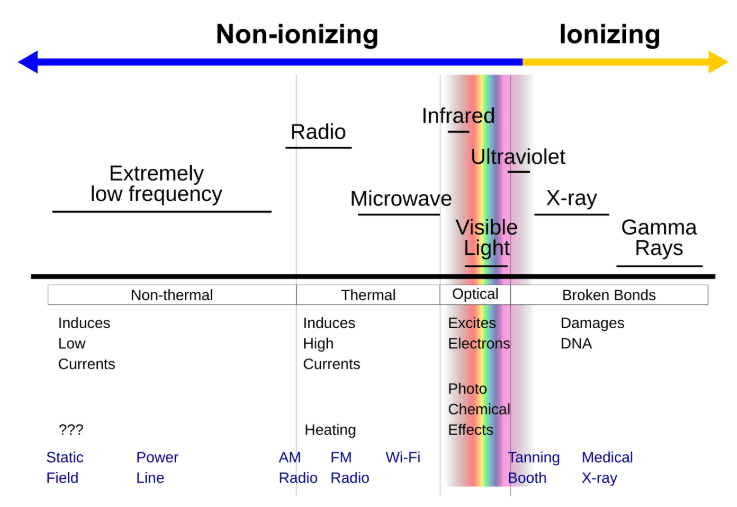 Figure 2. Types of electromagnetic radiation: non-ionizing versus ionizing radiation. Image credit: Spazturtle at Wikipedia