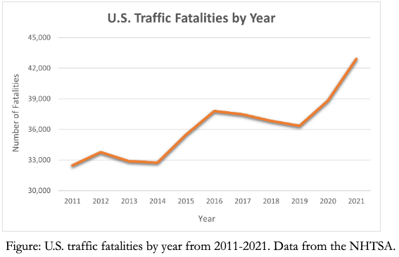 In February of 2020, I shared a newsletter on traffic fatalities, detailing various types of automotive accidents and how one might reduce risk of each. Above all, I emphasized that car crashes are an extraordinarily common yet often overlooked cause of death in the United States.