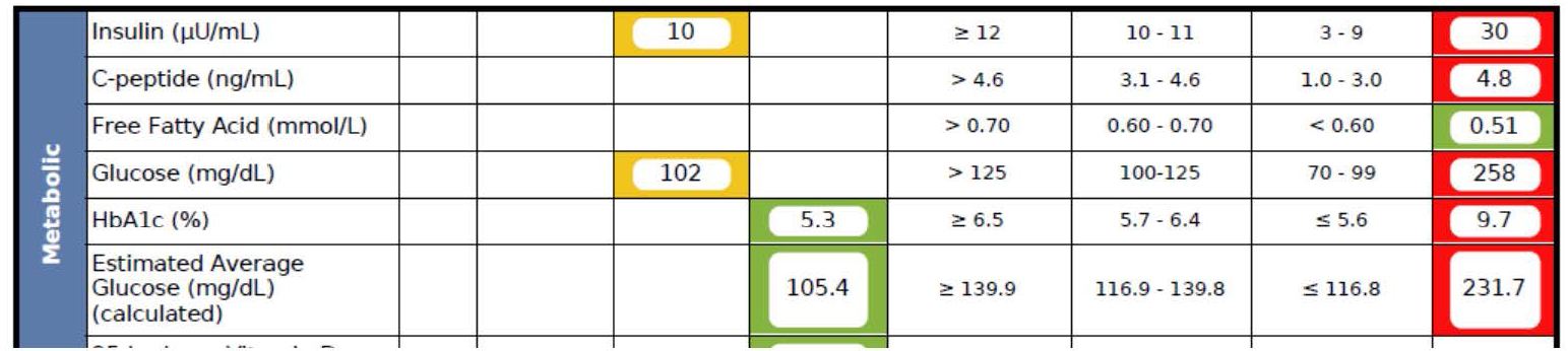 As you can see, the HbA1C fell to 5.3%—that’s even below the threshold of pre-diabetes—and the fasting glucose and insulin fell to 102 and 10, respectively (HOMA-IR calculated at 2.5).